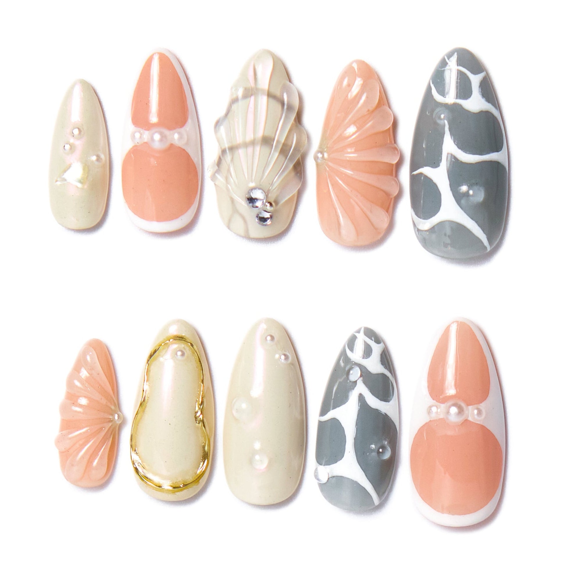 Unique 3D seashell embellishments, crafted with intricate detail, add a touch of nautical charm.