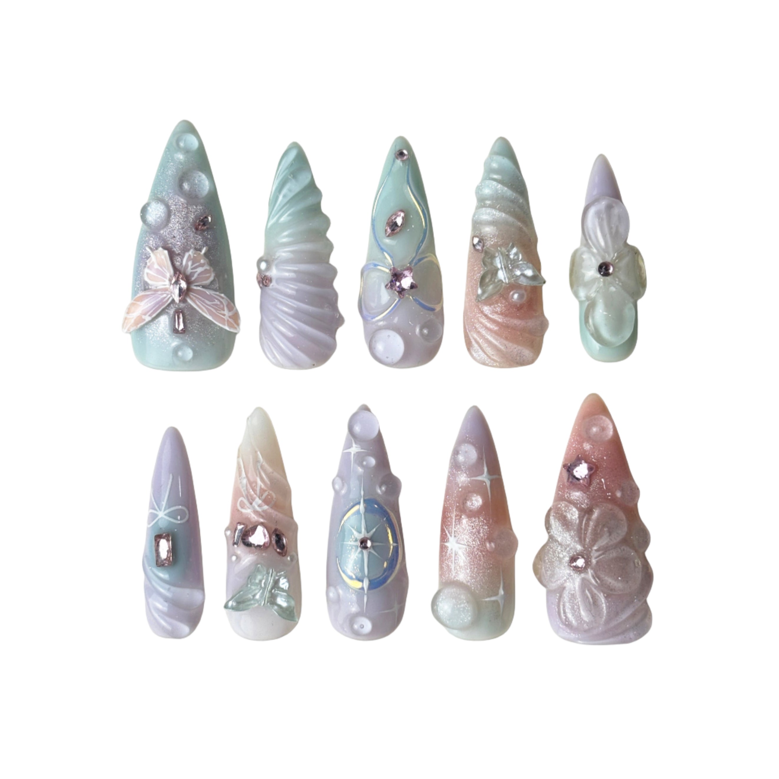 Dreamy Muse Stiletto - Dreamy, ethereal, and poetic... this nail set transports you to a fairy-tale world!