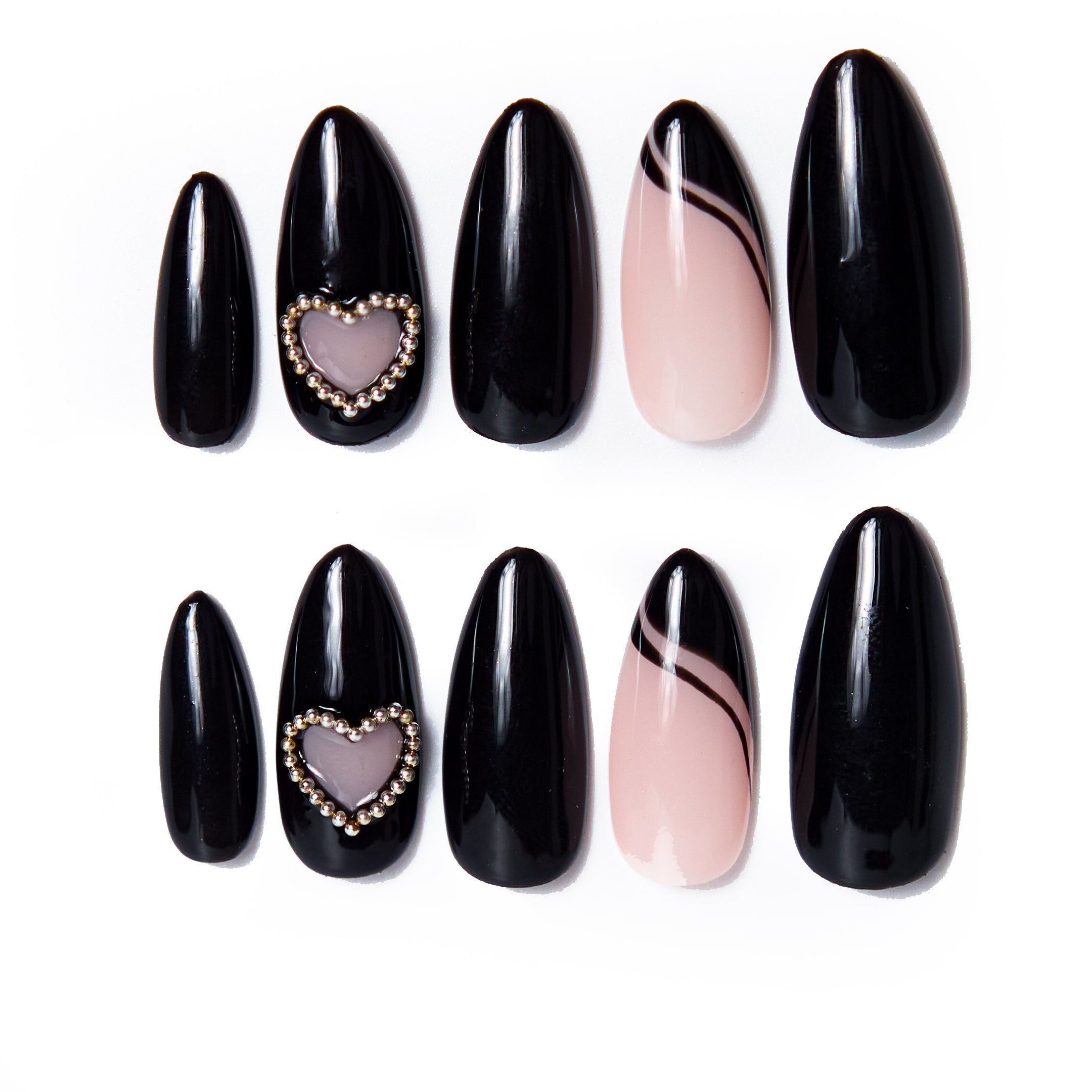 Noir Heart Almond - Dramatic, romantic, and sophisticated... this nail set is the perfect blend of elegant charm and delicate contrast!