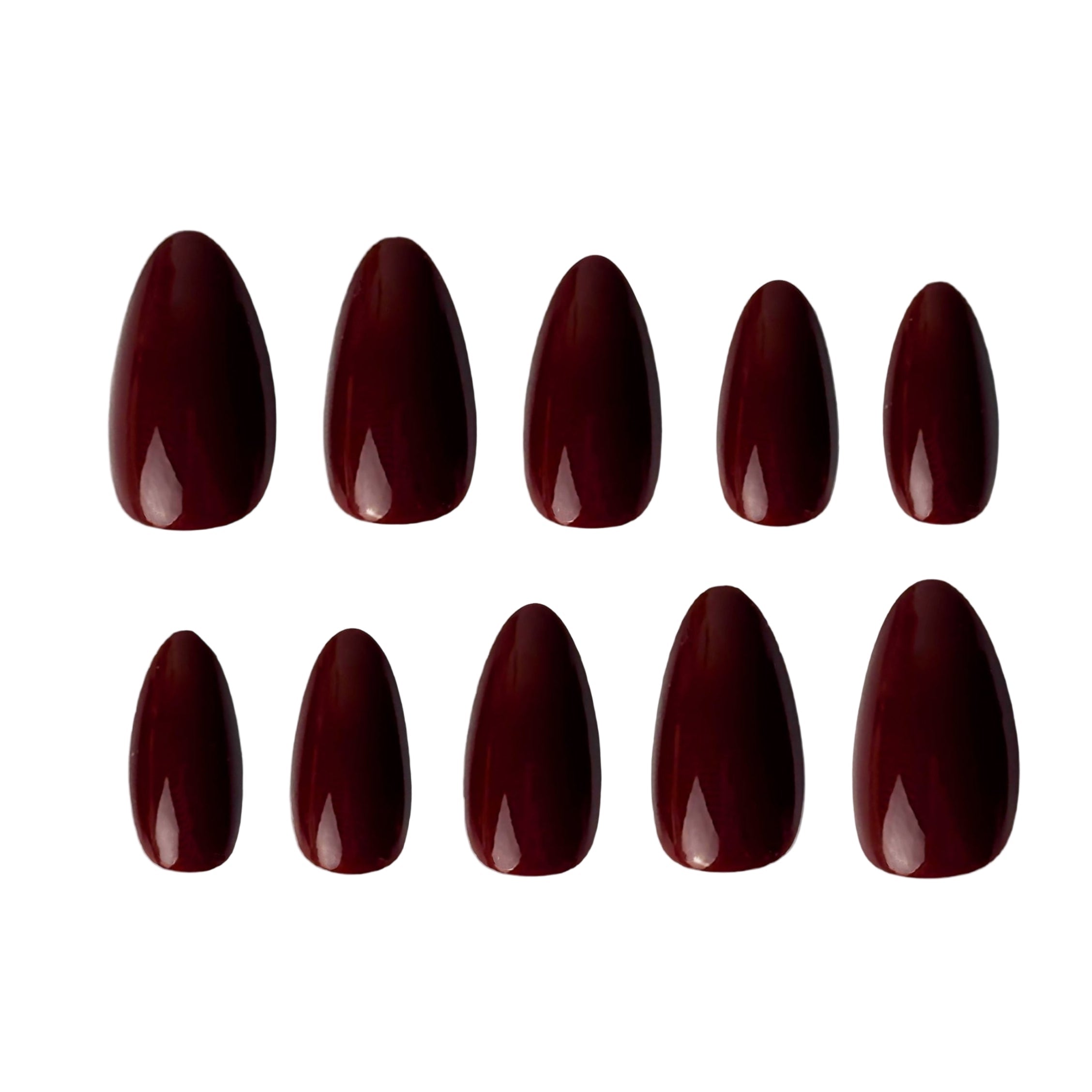 These nails feature a deep, uniform burgundy red that exudes a sense of opulent sophistication. This rich, alluring shade is a classic statement of confidence and style, making it the perfect accessory for any occasion where you want to feel empowered and chic.