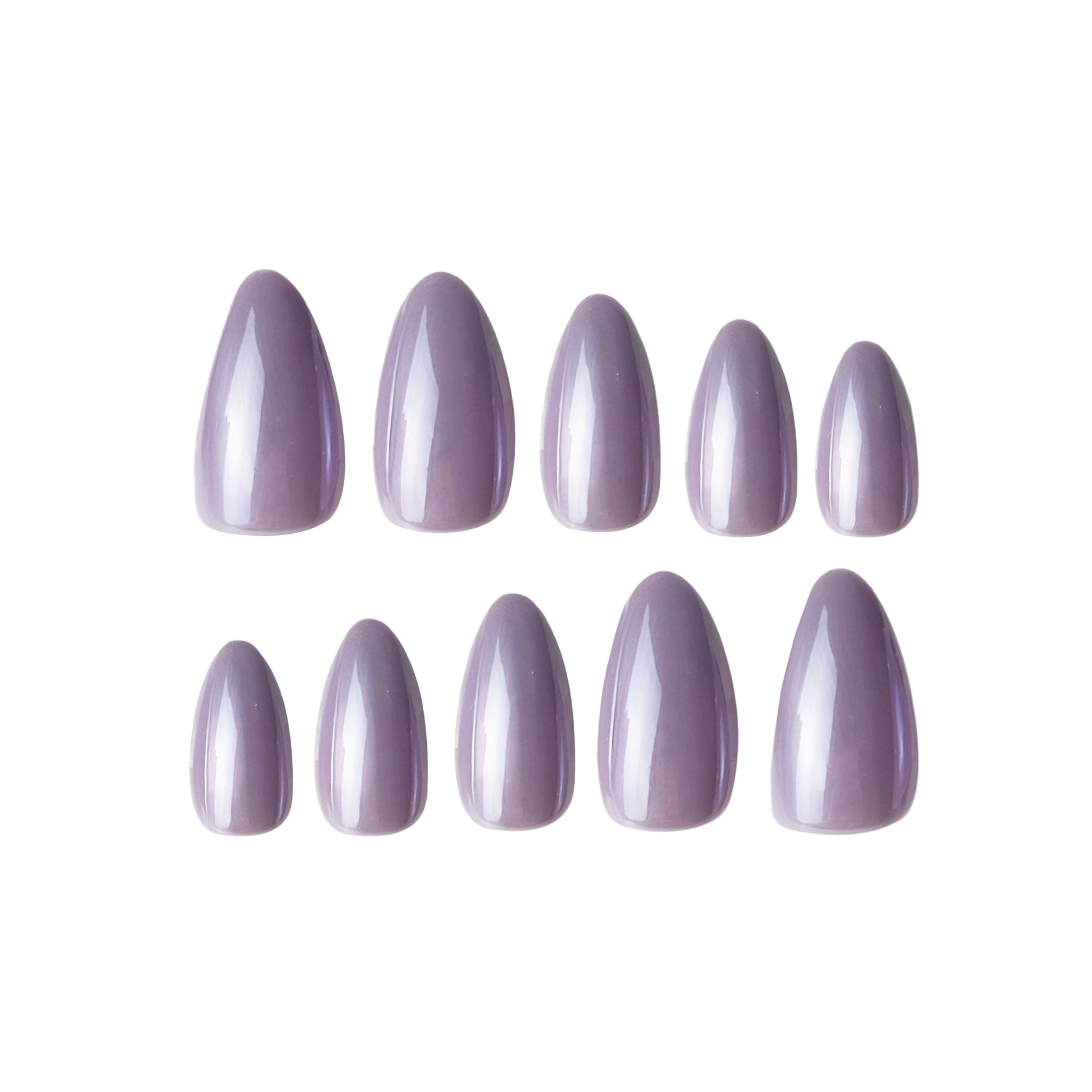 These nails feature a striking glazed finish in a vivid purple hue, offering a vibrant and mesmerizing look. The iridescent shimmer adds an enchanting depth, making the color pop and shift beautifully in the light. This is an eye-catching design for anyone who wants to make a bold and unforgettable impression.